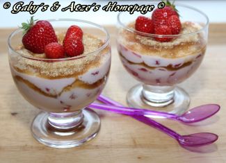 Die ganzen Erdbeeren oben drauf legen. Das Dessert etwa 3 Stunden (oder über Nacht)in den Kühlschrank stellen,
